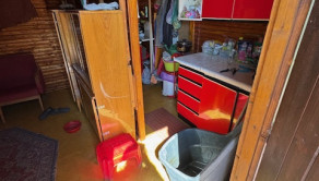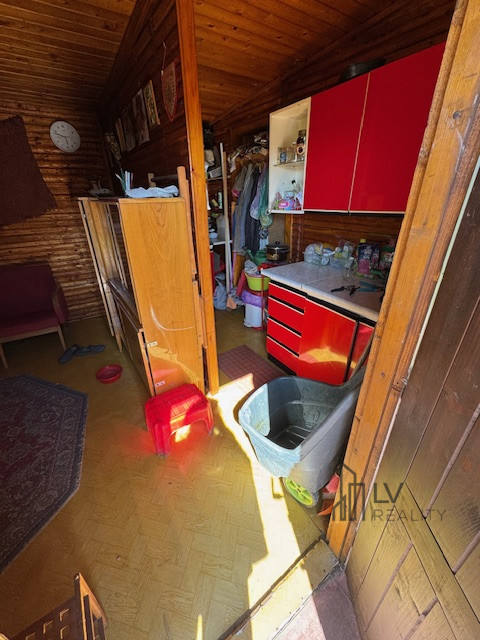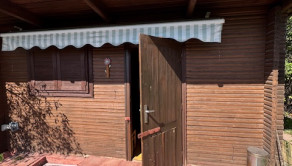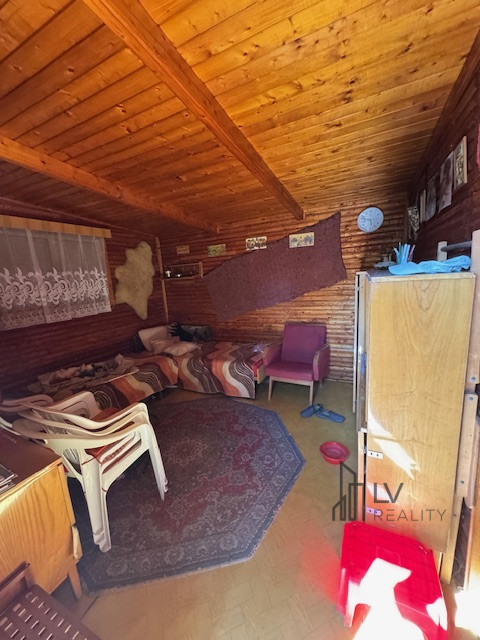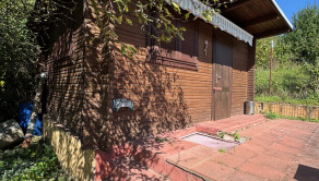 Na oplotenom pozemku sa nachádza drevená chatka, pivnica, ohnisko a kôlňa na odkladanie náradia.
