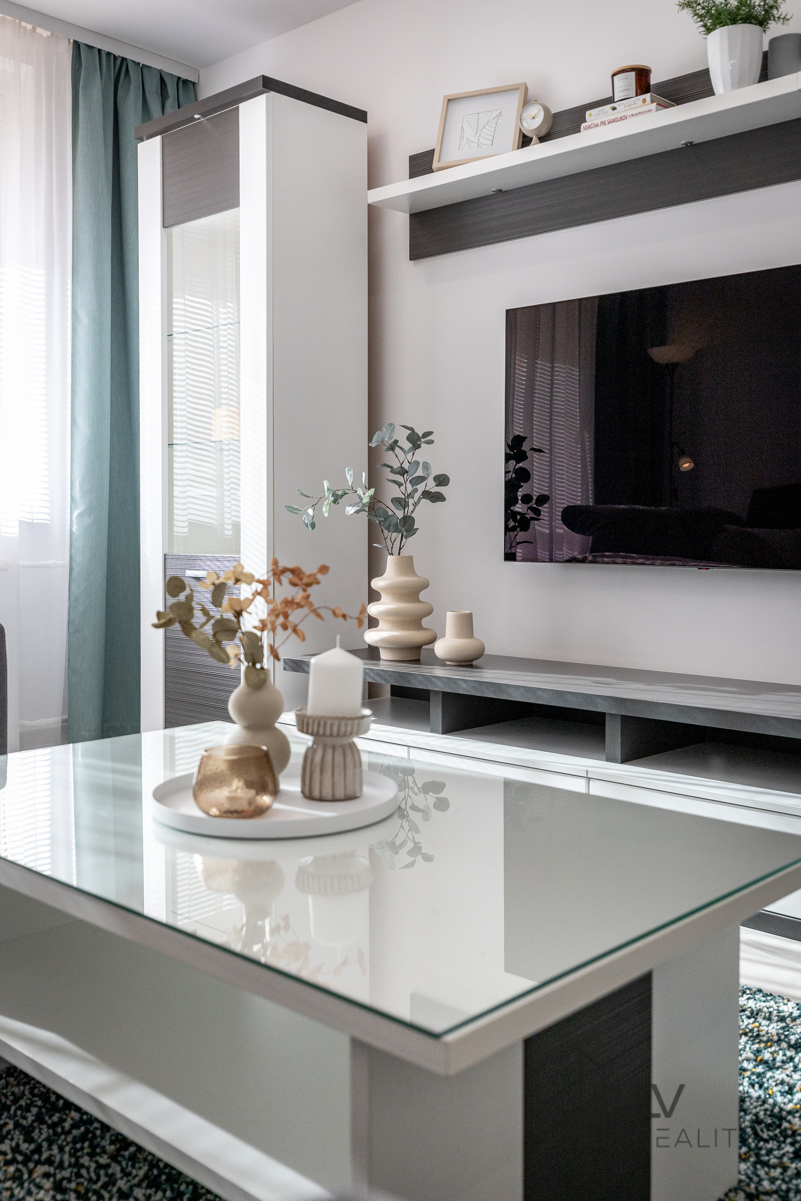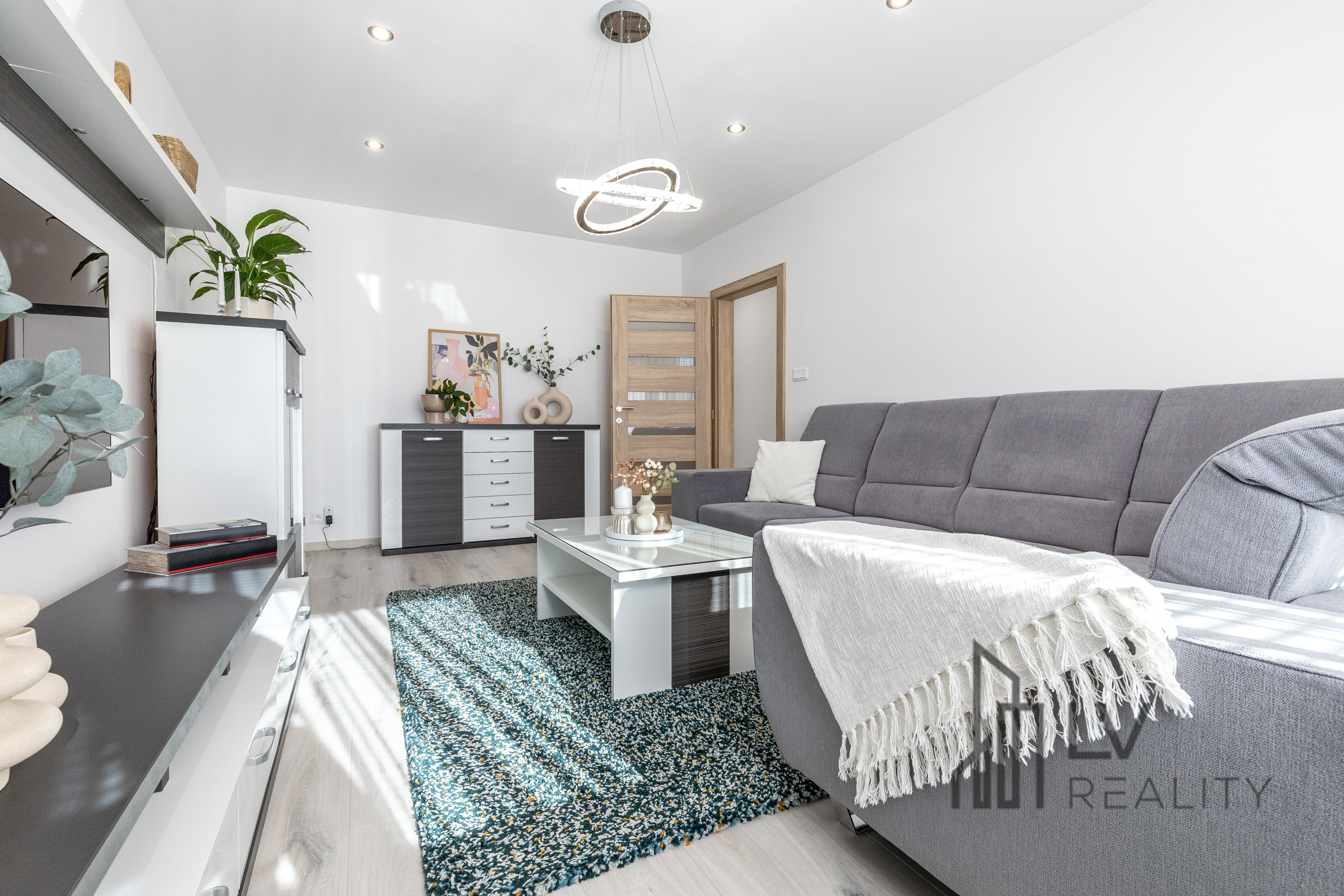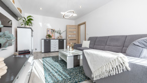 Obývacia časť je vkusne zariadená a je plne pripravená na bývanie. Z obývačky je výstup na loggiu, čo priestoru dodáva svetlosť a vzdušnosť.