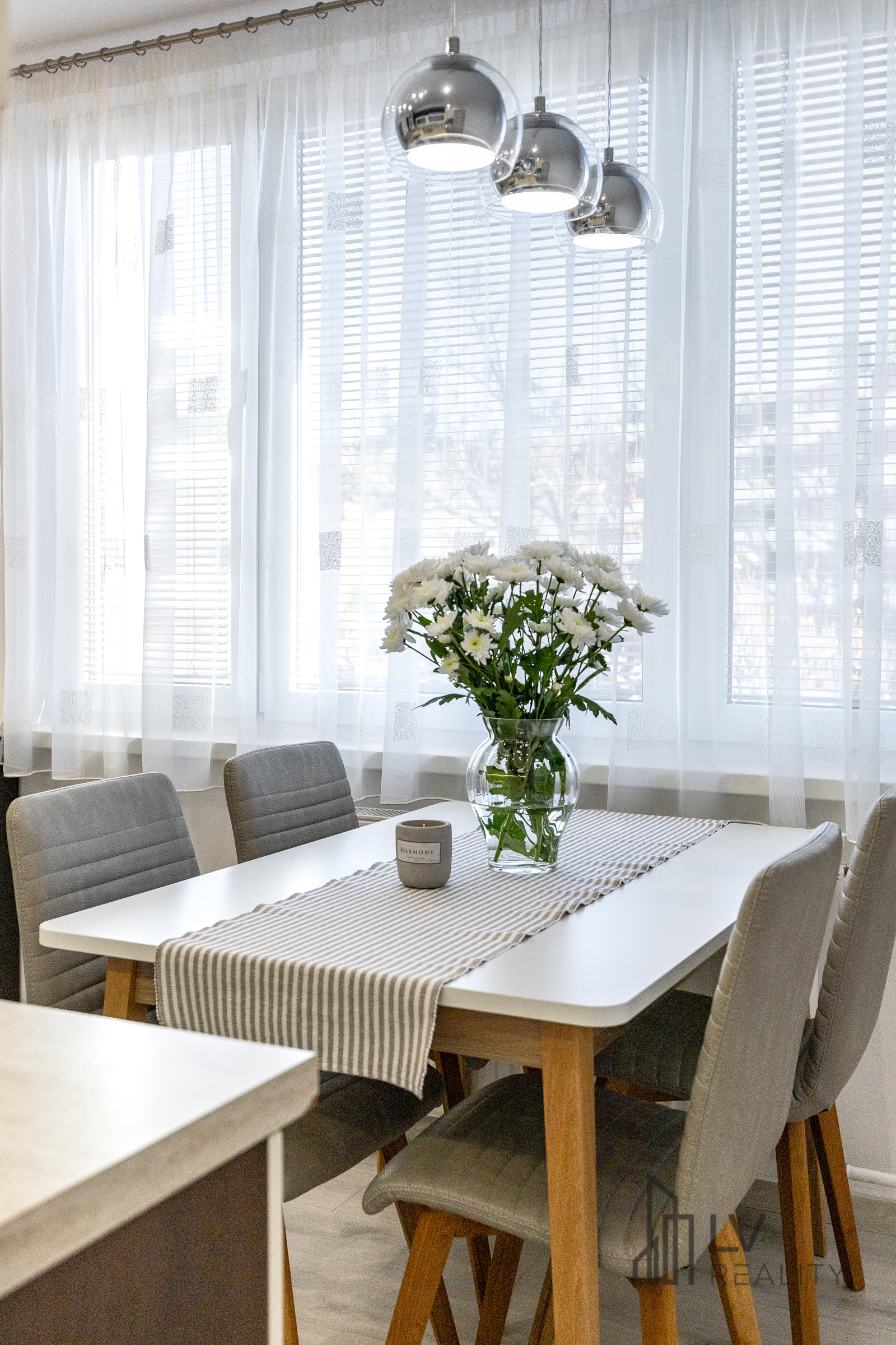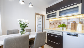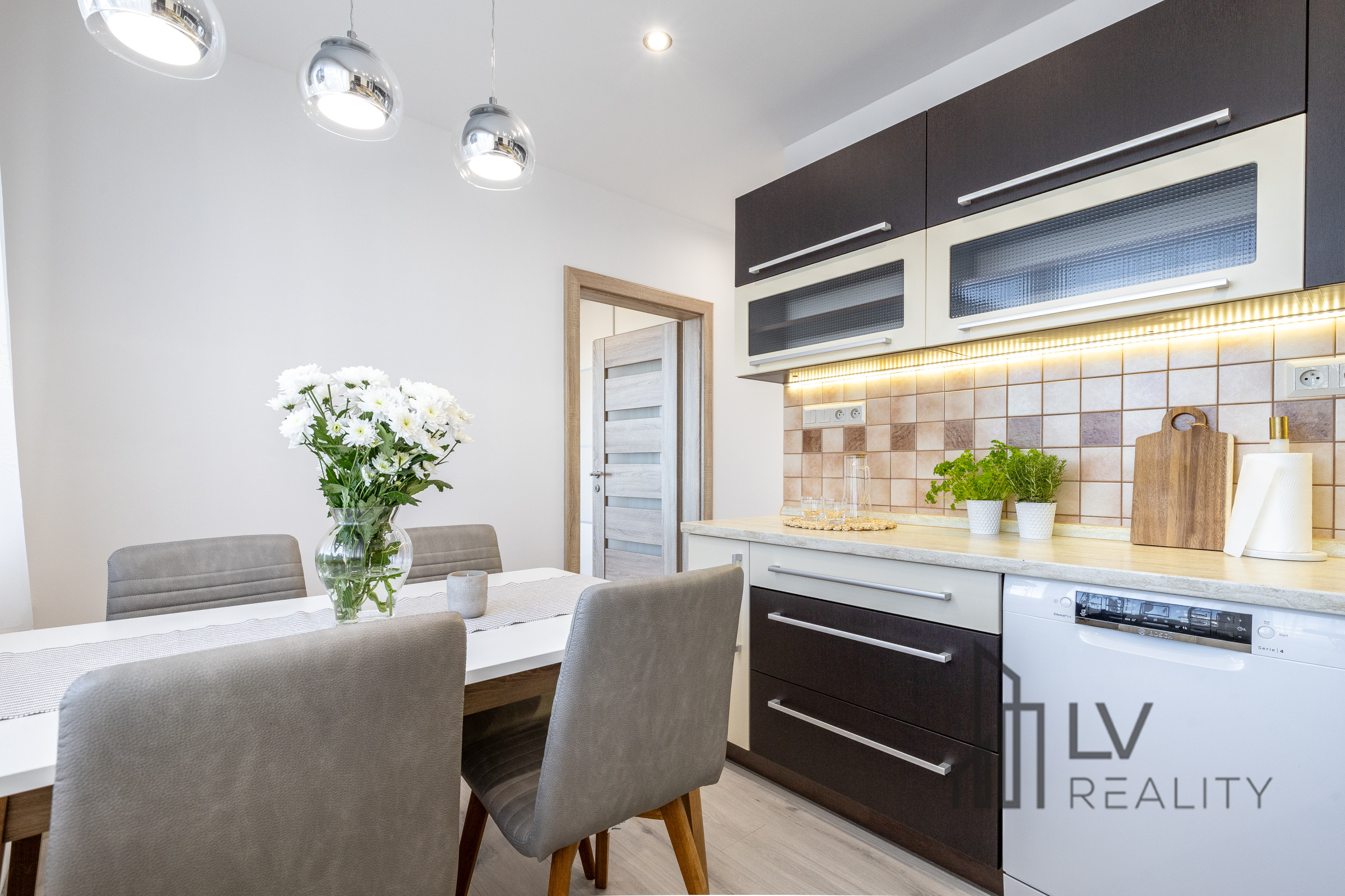 Kuchyňa disponuje modernou kuchynskou linkou vybavenou spotrebičmi- plynová varná doska s prípravou na indukčnú varnú dosku, elektrická rúra, digestor, mikrovlnka, umývačka riadu a chladnička s mrazničkou. Súčasťou kuchyne je jedálenský stôl so stoličkami, ideálny na pohodlné stravovanie.