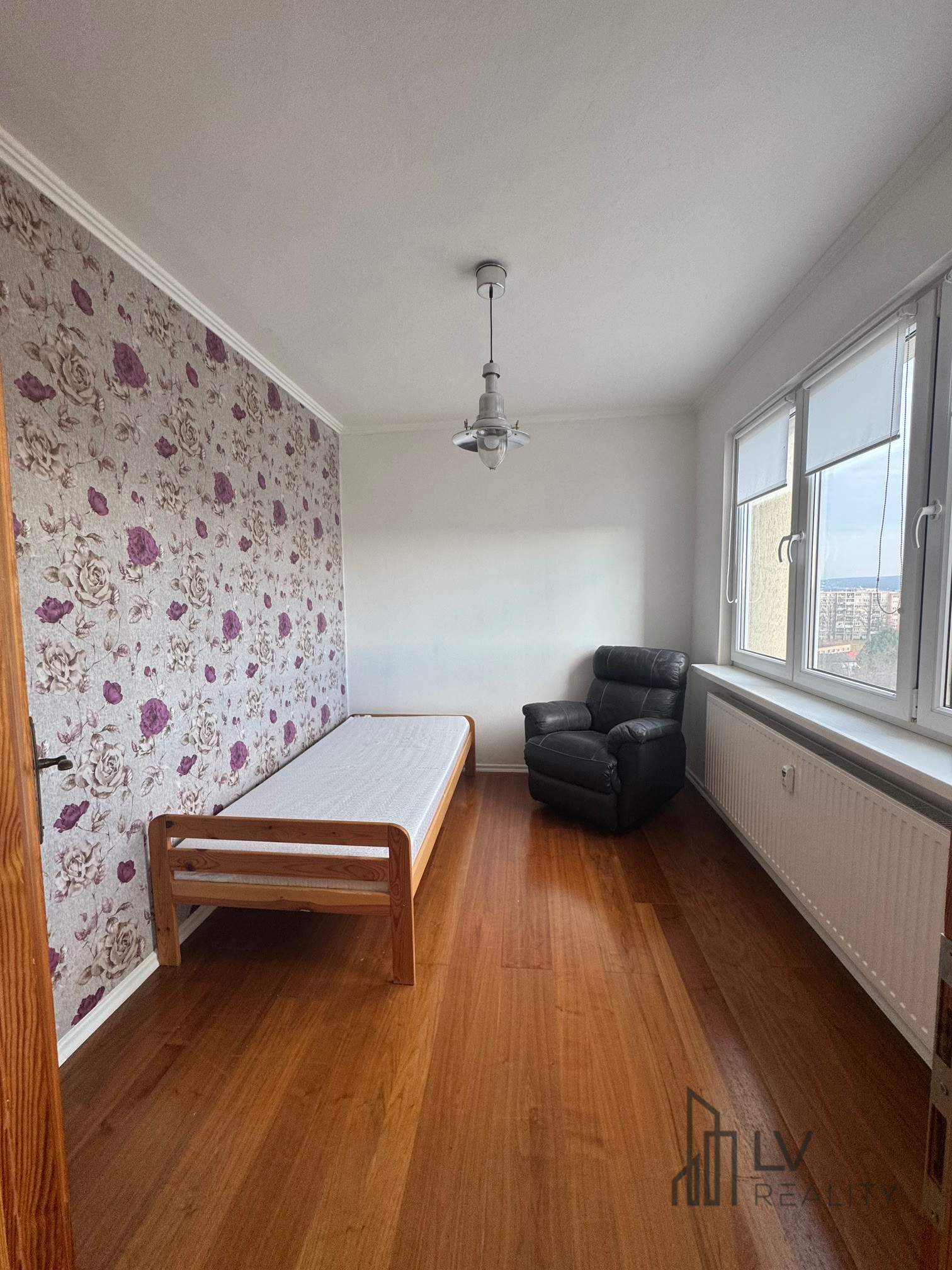 Byt o výmere 56 m2 + zasklená loggia sa nachádza na 8/10. poschodí a prešiel úplnou rekonštrukciou. Sú vymenené plastové okná, rekonštruovaná stúpačka.