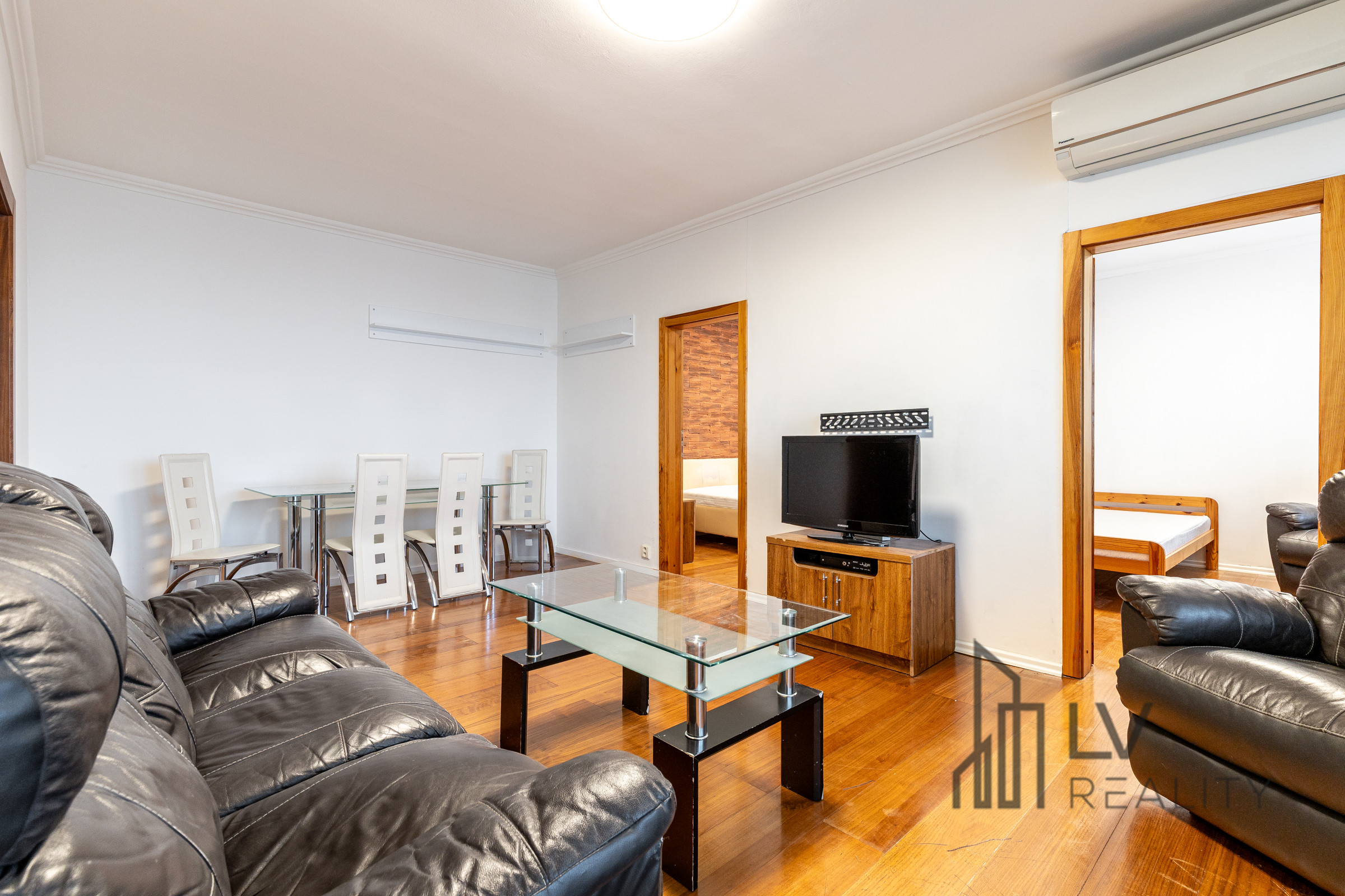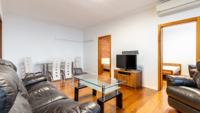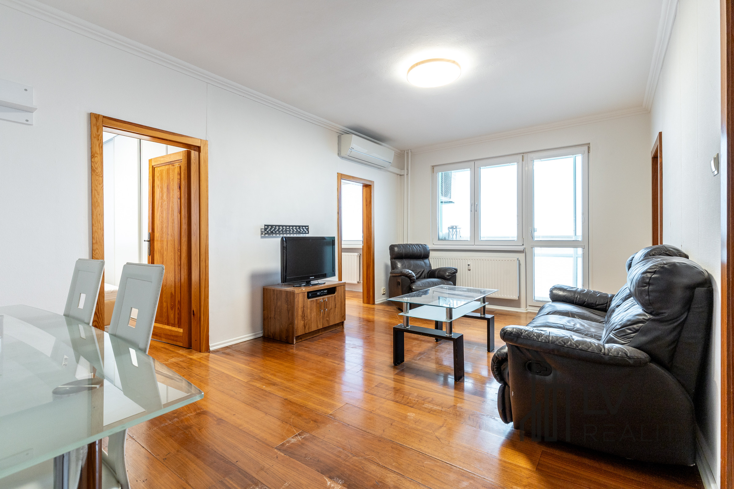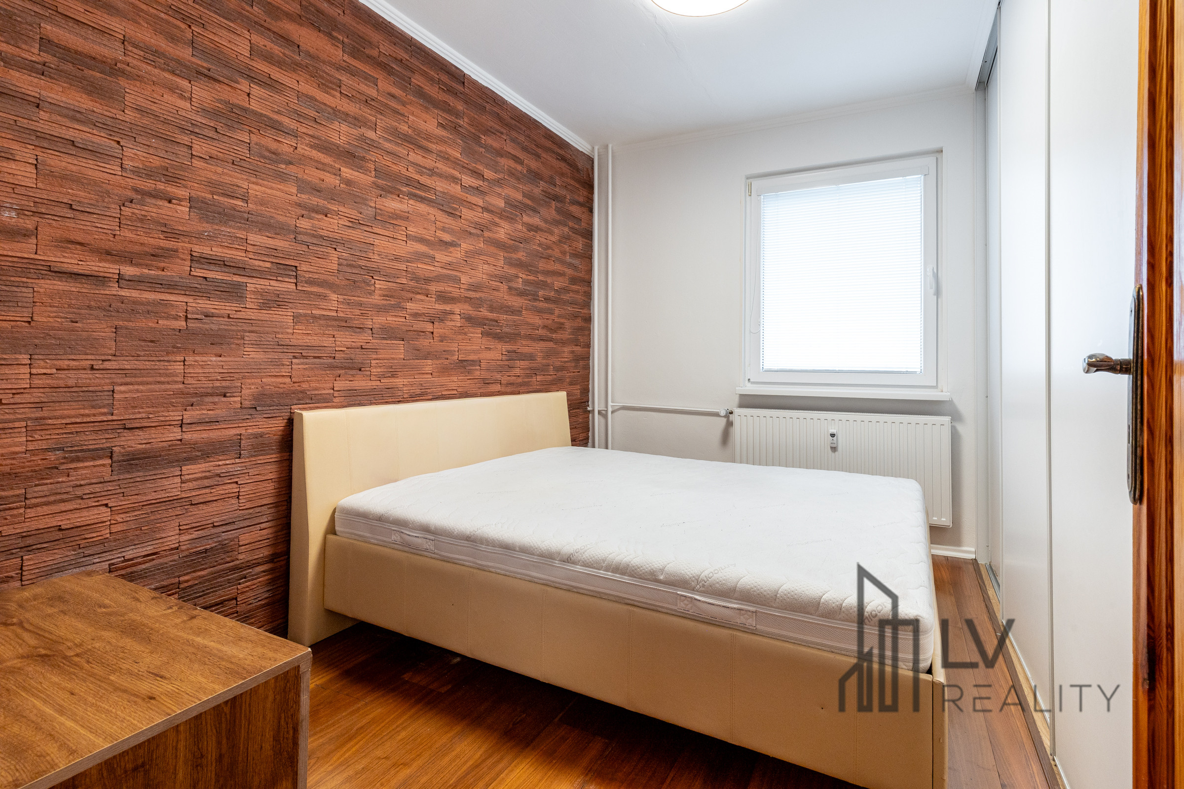 Na chodbe a v spálni sú vstavané skrine. V obývačke je osadená klimatizačná jednotka.