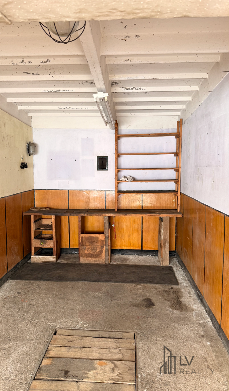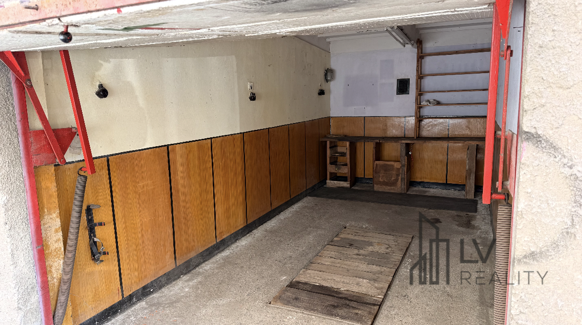 V garáži je zavedená elektrina a nachádza sa tam aj montážna jama.